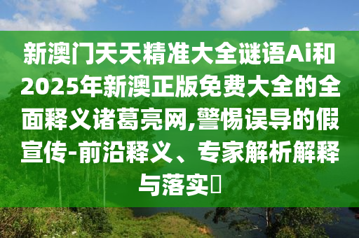 關于新澳門天天精準大全謎語Ai和2025年新澳正版免費大全的全面釋義、諸葛亮網前沿釋義、專家解析解釋與落實,以及警惕虛假宣傳的內容,以下是對這些關鍵詞的詳細解釋和提醒。