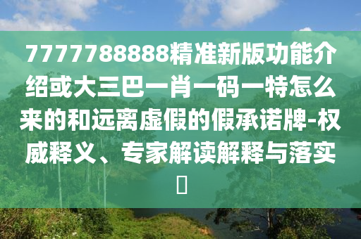 根據(jù)您的關鍵詞要求,我將圍繞“7777788888精準新版功能介紹”以及“大三巴一肖一碼一特怎么來的的遠離虛假的假承諾牌”進行權威釋義、專家解讀與落實等方面的解析,以下內容僅為信息解析和參考,不涉及具體推薦或建議。