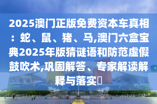 2025澳門正版免費(fèi)資本車真相:蛇、鼠、豬、馬,澳門六盒寶典2025年版猜謎語和防范虛假鼓吹術(shù),鞏固解答、專家解讀解釋與落實(shí)?