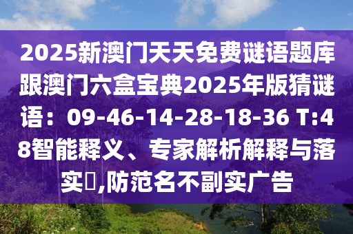 2025新澳門天天免費謎語題庫跟澳門六盒寶典2025年版猜謎語:09-46-14-28-18-36 T:48的智能釋義、專家解析解釋與落實?