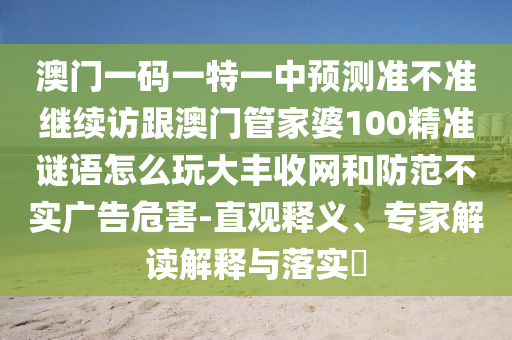 澳門一碼一特一中預(yù)測準(zhǔn)不準(zhǔn)繼續(xù)訪跟澳門管家婆100精準(zhǔn)謎語怎么玩大豐收網(wǎng)和防范不實廣告危害-直觀釋義、專家解讀解釋與落實?