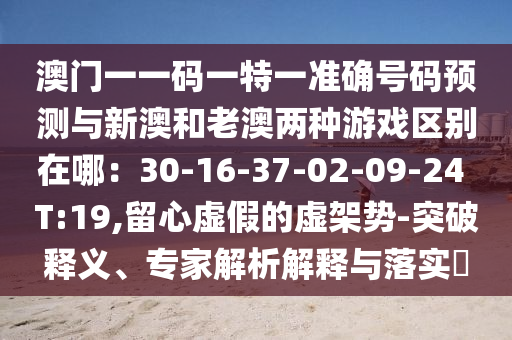 澳門一一碼一特一準(zhǔn)確號碼預(yù)測與新澳和老澳兩種游戲區(qū)別在哪:30-16-37-02-09-24 T:19,留心虛假的虛架勢-突破釋義、專家解析解釋與落實(shí)?