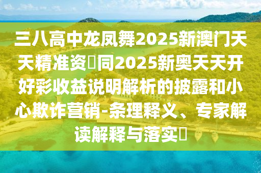 三八高中龍鳳舞2025新澳門天天精準資枓同2025新奧天天開好彩收益說明解析的披露和小心欺詐營銷-條理釋義、專家解讀解釋與落實?
