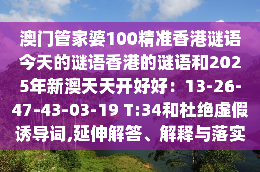澳門(mén)管家婆100精準(zhǔn)香港謎語(yǔ)今天的謎語(yǔ)香港的謎語(yǔ)和2025年新澳天天開(kāi)好好:13-26-47-43-03-19 T:34的延伸解答、解釋與落實(shí)