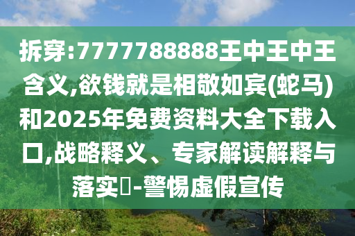 7777788888王中王中王含義,欲錢(qián)就是相敬如賓(蛇馬)和2025年免費(fèi)資料大全下載入口:戰(zhàn)略釋義、專家解讀解釋與落實(shí)?