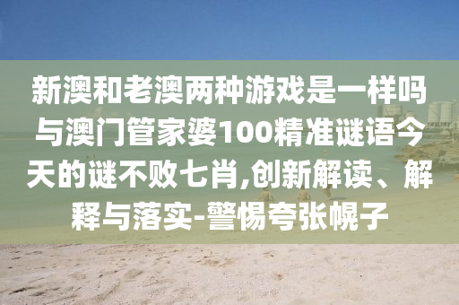 新澳和老澳兩種游戲是一樣嗎與澳門管家婆100精準(zhǔn)謎語今天的謎不敗七肖的創(chuàng)新解讀、解釋與落實(shí)