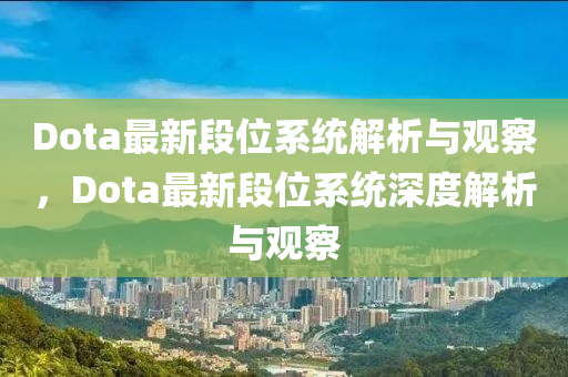 隨著游戲產(chǎn)業(yè)的快速發(fā)展,眾多電子競(jìng)技游戲都在尋求創(chuàng)新與突破,在這其中,歷史悠久的競(jìng)技游戲《Dota 2》一直在引領(lǐng)著MOBA游戲的潮流,Dota 2的段位系統(tǒng)迎來(lái)了全新的更新與調(diào)整,引發(fā)了廣大玩家的熱議,本文將從新聞報(bào)道的視角出發(fā),結(jié)合個(gè)人見(jiàn)解,對(duì)Dota的最新段位系統(tǒng)進(jìn)行深度解析。