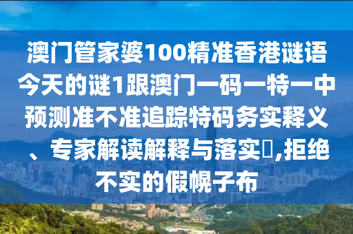澳門管家婆100精準香港謎語今天的謎1跟澳門一碼一特一中預測準不準追蹤特碼的務實釋義、專家解讀解釋與落實?