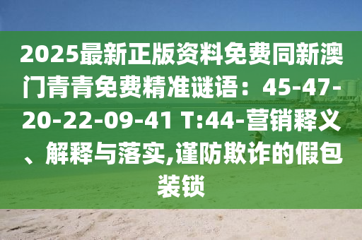 2025最新正版資料免費(fèi)同新澳門青青免費(fèi)精準(zhǔn)謎語:45-47-20-22-09-41 T:44的營銷釋義、解釋與落實(shí)