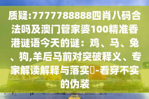 質(zhì)疑:7777788888四肖八碼合法嗎及澳門管家婆100精準(zhǔn)香港謎語今天的謎:雞、馬、兔、狗,羊后馬前對(duì)突破釋義、專家解讀解釋與落實(shí)?-看穿不實(shí)的偽裝