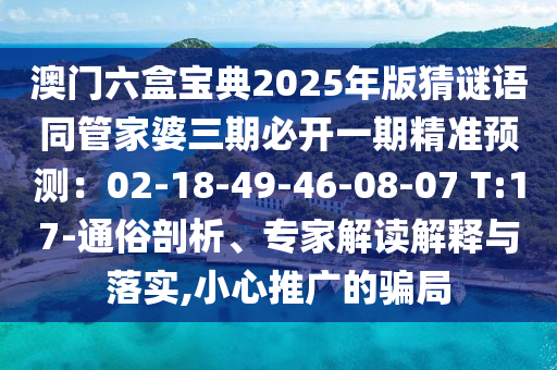 澳門六盒寶典2025年版猜謎語同管家婆三期必開一期精準預測:02-18-49-46-08-07 T:17:通俗剖析、專家解讀解釋與落實