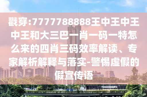 關(guān)于關(guān)鍵詞“戳穿”、“7777788888王中王中王中王”、“大三巴一肖一碼一特”、“四肖三碼效率解讀”、“專家解析解釋與落實(shí)”以及“警惕虛假宣傳”的釋義、解釋與落實(shí),在此為您提供一個(gè)清晰、準(zhǔn)確的闡述,并提醒公眾對(duì)宣傳內(nèi)容保持警惕。