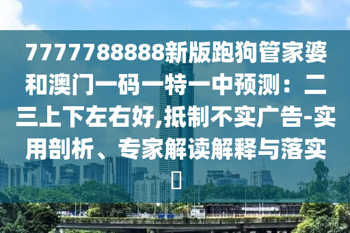 7777788888新版跑狗管家婆和澳門一碼一特一中預(yù)測:二三上下左右好,抵制不實廣告-實用剖析、專家解讀解釋與落實?