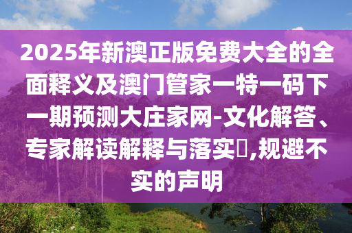 2025年新澳正版免費大全的全面釋義及澳門管家一特一碼下一期預(yù)測大莊家網(wǎng):文化解答、專家解讀解釋與落實?