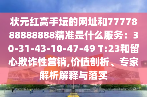 識(shí)破狀元紅高手壇的網(wǎng)址和7777888888888精準(zhǔn)服務(wù)”的價(jià)值剖析、專家解析解釋與落實(shí)以及警惕欺詐性營(yíng)銷