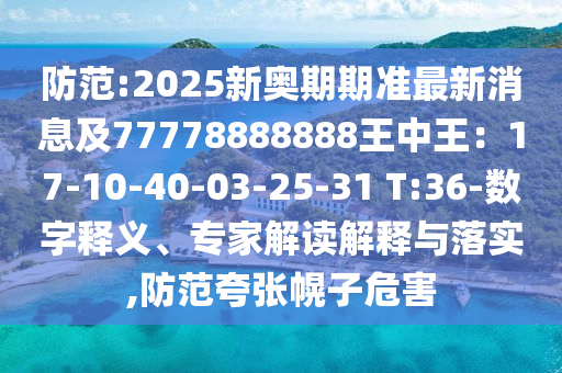 防范:2025新奧期期準(zhǔn)最新消息及77778888888王中王:17-10-40-03-25-31 T:36-數(shù)字釋義、專家解讀解釋與落實(shí),防范夸張幌子危害