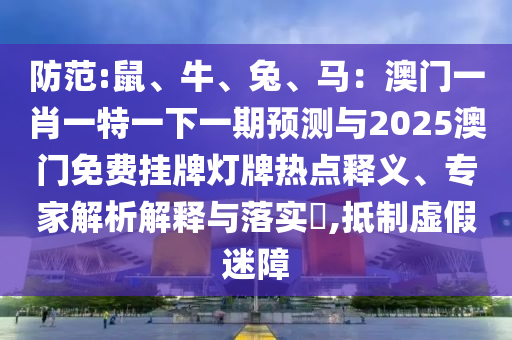 關(guān)于防范鼠、牛、兔、馬生肖預(yù)測(cè)與澳門免費(fèi)掛牌燈牌熱點(diǎn)的問(wèn)題,我們需要從全面釋義、專家解讀與落實(shí)以及警惕虛假宣傳三個(gè)方面進(jìn)行深入解析,以下是對(duì)此現(xiàn)象的詳細(xì)分析。
