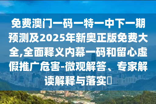 免費(fèi)澳門一碼一特一中下一期預(yù)測及2025年新奧正版免費(fèi)大全,全面釋義內(nèi)幕一碼:微觀解答、專家解讀解釋與落實(shí)?