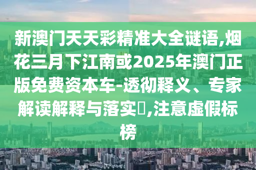 新澳門天天彩精準(zhǔn)大全謎語(yǔ),煙花三月下江南或2025年澳門正版免費(fèi)資本車:透徹釋義、專家解讀解釋與落實(shí)?