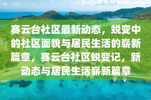 賽云臺社區(qū),一個充滿活力和潛力的城市社區(qū),近期以來不斷傳來令人振奮的最新消息,本文將結(jié)合新聞報道的視角,對賽云臺社區(qū)的最新動態(tài)進行梳理,并融入自己的見解,以期為讀者呈現(xiàn)一幅蛻變中的社區(qū)面貌與居民生活嶄新篇章的生動畫面。