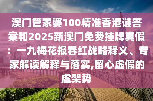 澳門管家婆100精準(zhǔn)香港謎答案和2025新澳門免費(fèi)掛牌真假:一九梅花報(bào)春紅:戰(zhàn)略釋義、專家解讀解釋與落實(shí)