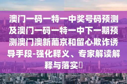 澳門一碼一特一中獎號碼預(yù)測及澳門一碼一特一中下一期預(yù)測澳門澳新葡京的強(qiáng)化釋義、專家解讀解釋與落實?