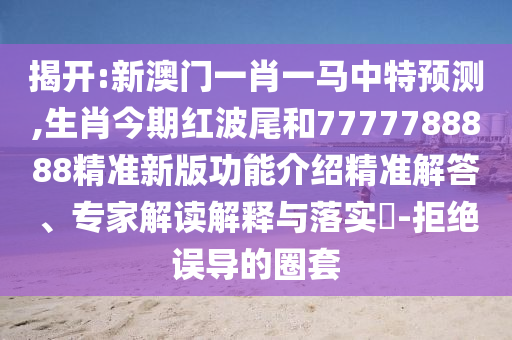 揭開新澳門一肖一馬中特預(yù)測(cè)、生肖今期紅波尾和7777788888精準(zhǔn)新版等相關(guān)內(nèi)容的全面釋義、專家解讀與落實(shí),以及警惕虛假宣傳和拒絕誤導(dǎo)的圈套