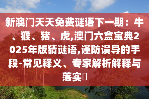 新澳門天天免費謎語下一期:牛、猴、豬、虎,澳門六盒寶典2025年版猜謎語的常見釋義、專家解析解釋與落實?