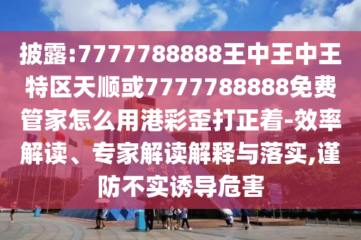 披露:7777788888王中王中王特區(qū)天順或7777788888免費管家怎么用港彩歪打正著-效率解讀、專家解讀解釋與落實,謹防不實誘導危害