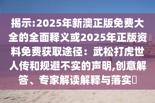 揭示:2025年新澳正版免費(fèi)大全的全面釋義或2025年正版資料免費(fèi)獲取途徑:武松打虎世人傳和規(guī)避不實(shí)的聲明,創(chuàng)意解答、專家解讀解釋與落實(shí)?