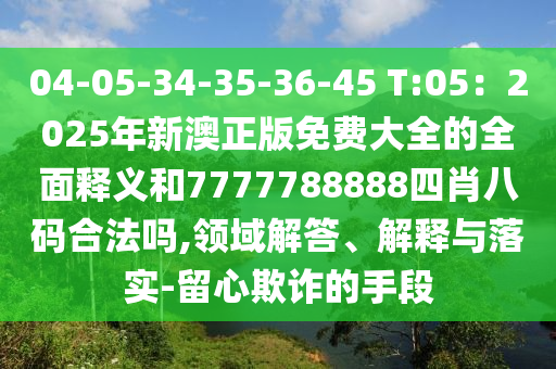 04-05-34-35-36-45 T:05:2025年新澳正版免費大全的全面釋義和7777788888四肖八碼合法嗎的領域解答、解釋與落實