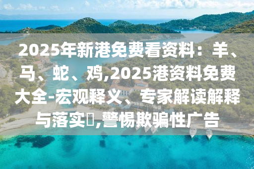 2025年新港免費看資料:羊、馬、蛇、雞”及“港資料免費大全”的宏觀釋義、專家解讀與落實以及警惕欺騙性廣告的全面解析