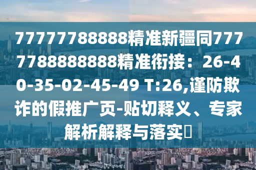 77777788888精準(zhǔn)新疆同7777788888888精準(zhǔn)銜接:26-40-35-02-45-49 T:26的貼切釋義、專家解析解釋與落實?