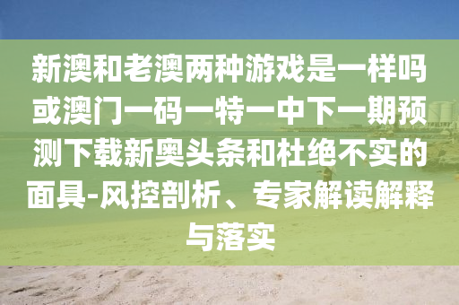 新澳和老澳兩種游戲是一樣嗎或澳門一碼一特一中下一期預測下載新奧頭條:風控剖析、專家解讀解釋與落實