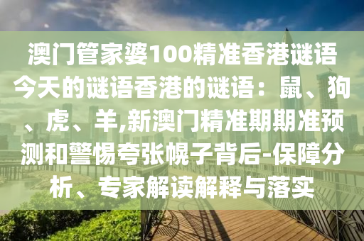 澳門管家婆100精準(zhǔn)香港謎語今天的謎語香港的謎語:鼠、狗、虎、羊,新澳門精準(zhǔn)期期準(zhǔn)預(yù)測的保障分析、專家解讀解釋與落實(shí)