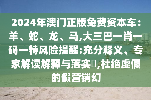 關(guān)于2024年澳門正版免費(fèi)資本車:羊、蛇、龍、馬與大三巴一肖一碼一特的風(fēng)險(xiǎn)提醒、充分釋義、專家解讀解釋與落實(shí)及杜絕虛假假營(yíng)銷幻想的文章