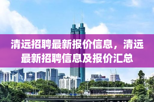 隨著經(jīng)濟(jì)的持續(xù)發(fā)展,清遠(yuǎn)招聘市場也在不斷變化,本文將根據(jù)最新報(bào)價(jià),結(jié)合新聞報(bào)道的視角,對當(dāng)前的招聘市場進(jìn)行深入剖析,并分享個(gè)人的見解。