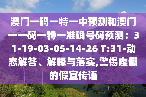 澳門一碼一特一中預(yù)測和澳門一一碼一特一準(zhǔn)確號碼預(yù)測:31-19-03-05-14-26 T:31的動態(tài)解答、解釋與落實(shí)