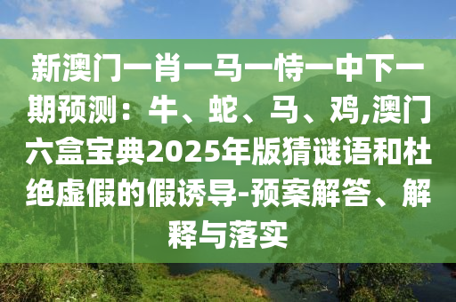 新澳門一肖一馬一恃一中下一期預(yù)測:牛、蛇、馬、雞,澳門六盒寶典2025年版猜謎語的預(yù)案解答、解釋與落實(shí)