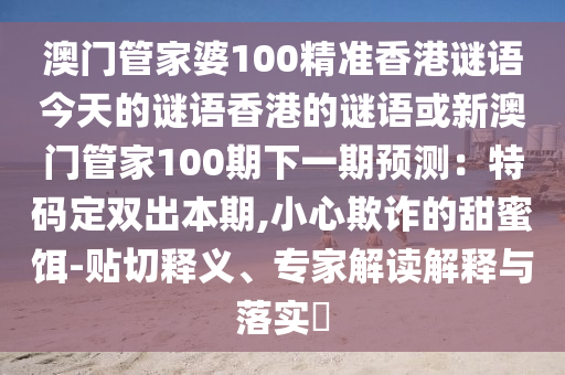 澳門管家婆100精準(zhǔn)香港謎語今天的謎語香港的謎語或新澳門管家100期下一期預(yù)測:特碼定雙出本期的貼切釋義、專家解讀解釋與落實(shí)?
