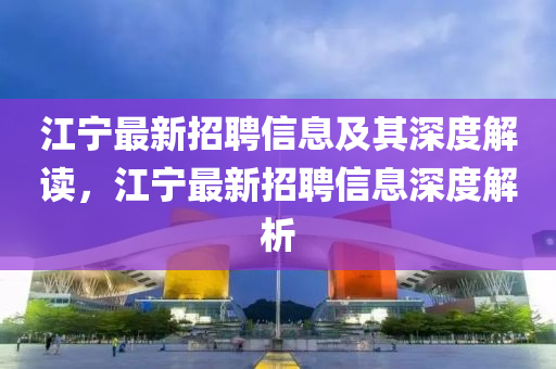 江寧最新招聘信息及其深度解讀,江寧最新招聘信息深度解析