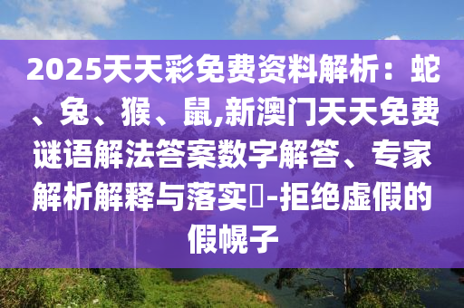 2025天天彩免費資料解析:蛇、兔、猴、鼠,新澳門天天免費謎語解法答案數(shù)字解答、專家解析解釋與落實?-拒絕虛假的假幌子