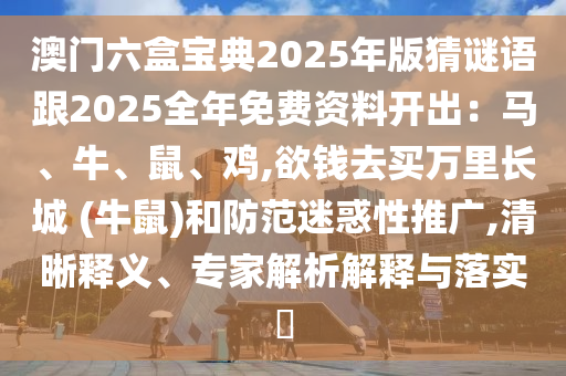 澳門六盒寶典2025年版猜謎語跟2025全年免費(fèi)資料開出:馬、牛、鼠、雞,欲錢去買萬里長(zhǎng)城 (牛鼠):清晰釋義、專家解析解釋與落實(shí)?