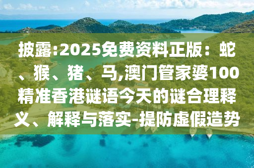 披露:2025免費(fèi)資料正版:蛇、猴、豬、馬,澳門(mén)管家婆100精準(zhǔn)香港謎語(yǔ)今天的謎合理釋義、解釋與落實(shí)-提防虛假造勢(shì)