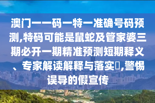 澳門一一碼一特一準確號碼預測,特碼可能是鼠蛇及管家婆三期必開一期精準預測短期釋義、專家解讀解釋與落實?,警惕誤導的假宣傳