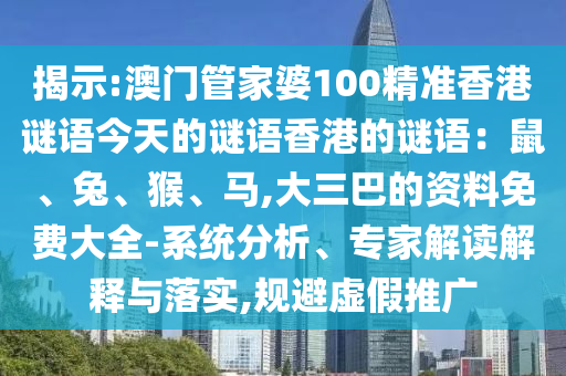 揭示:澳門管家婆100精準香港謎語今天的謎語香港的謎語:鼠、兔、猴、馬,大三巴的資料免費大全-系統(tǒng)分析、專家解讀解釋與落實,規(guī)避虛假推廣
