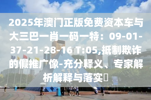 2025年澳門正版免費資本車與大三巴一肖一碼一特:09-01-37-21-28-16 T:05,抵制欺詐的假推廣像-充分釋義、專家解析解釋與落實?