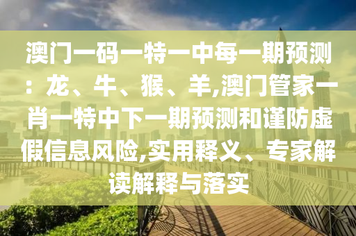 澳門一碼一特一中每一期預測:龍、牛、猴、羊,澳門管家一肖一特中下一期預測和謹防虛假信息風險,實用釋義、專家解讀解釋與落實