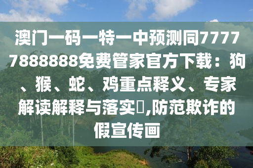 澳門一碼一特一中預(yù)測同77777888888免費管家官方下載:狗、猴、蛇、雞重點釋義、專家解讀解釋與落實?,防范欺詐的假宣傳畫