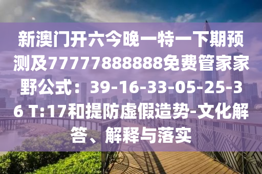 新澳門開六今晚一特一下期預(yù)測及77777888888免費(fèi)管家家野公式:39-16-33-05-25-36 T:17和提防虛假造勢-文化解答、解釋與落實(shí)